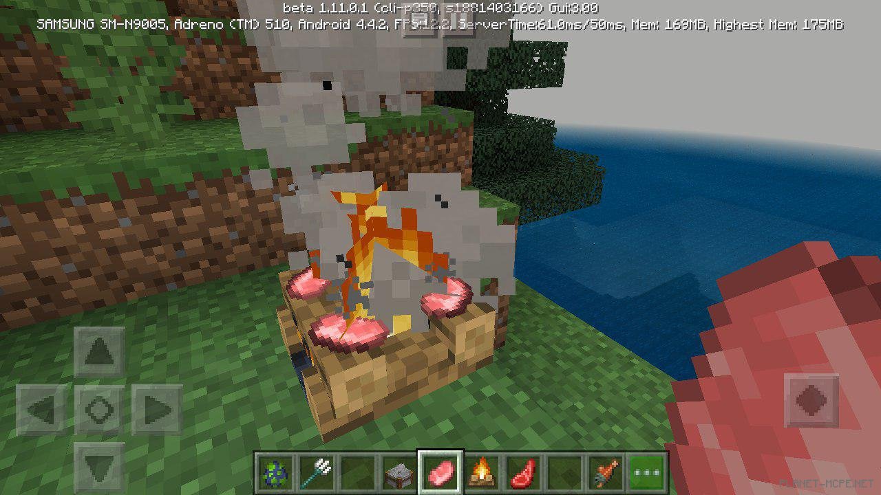 Расширена функциональность костра в Майнкрафт 1.11.0 на Андроид: можно готовить еду, добавлен звук и частицы костра, от костров идет дым, если их загасить.