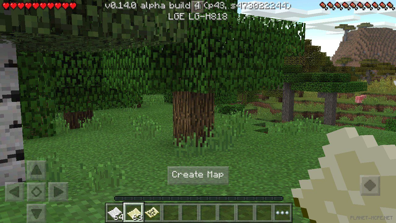 Так же версиями ранее (имеется виду бета сборками) была изменена опция использования карт. Тепер чтобы воспользоваться картой, Вам не нужно больше тапать ней по земле, воздуху или прочих блоках. Теперь когда вы берете в руку пустую карту, на экране появляется кнопочка «Create Map».
