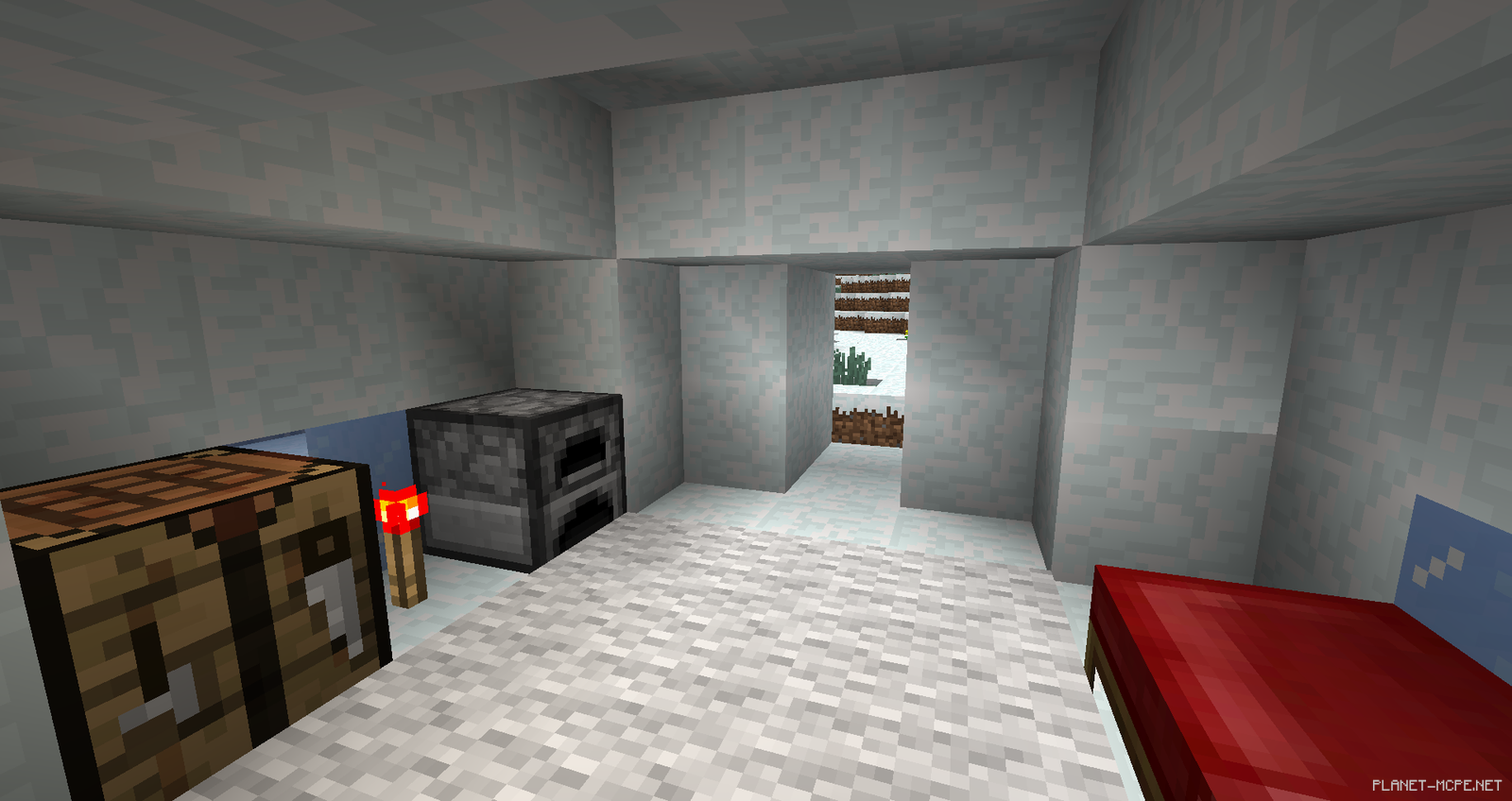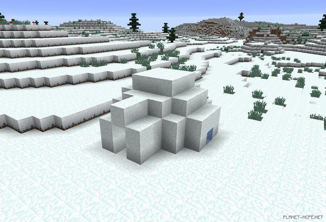 Так же помимо основного нововведения — «измерение Край», в игру было добавлено множество других нововведений, которые не можно оставить без внимания. К примеру, новая генерация, которую вы можете встретить в снежных биомах — Иглу. В этих Иглу на данный момент нету жителей, но полагаем, что в следующем обновлении жители этих уютных иглу будут порождаться в мире Minecraft Pocket Edition. На данный момент эти сооружения полностью укомплектованы внутри: кровать, верстак, печь.