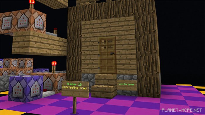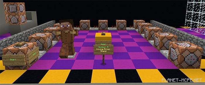 The map “12 Command Block Creations” showcases 12 impressive creations made with command blocks that can be useful if you ever wish to design your own map in Minecraft PE using command blocks. For instance, one creation will teach you everything about mob rotation, while another will guide you on triggering events based on the player’s location. Explore each creation in MCPE by interacting with every command block and reviewing the rules and commands.
