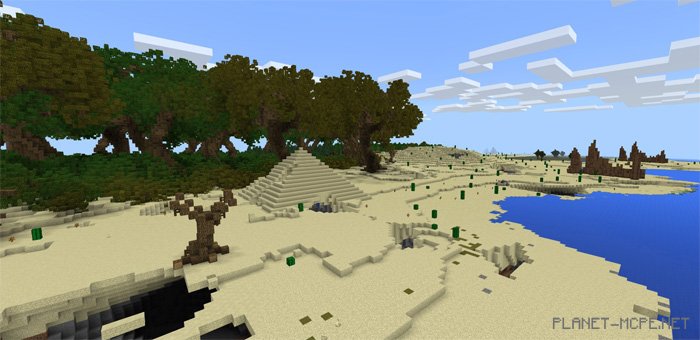 The map «Advanced Island (Enhanced Island)» features a variety of unique landscapes, ranging from mushroom deserts to vast oak forests. It’s an excellent small world for exploration if you’re looking to embark on a new adventure in Minecraft Pocket Edition. However, there is a minor drawback – venturing too far will lead you to a waterfall, beyond which lies only a flat expanse of MCPE. Everything else is simply amazing.