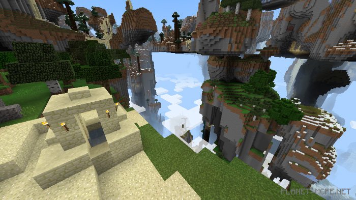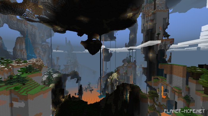 I also swapped out various stone types (andesite, granite, diorite) for yellow stone, packed ice, and nether quartz to add a touch of creativity. Additionally, there are oceans of lava, so watch out for gaps.