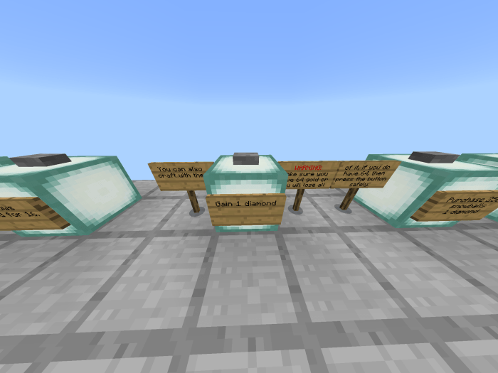 By clicking the button shown in the image below, you will receive currency. Each click grants you one gold coin. Once you collect 64 coins, you can exchange them for a diamond, which can be traded for nearly anything you require, but only in a single quantity. After gathering 64 gold coins, press the button depicted below. If you attempt this with fewer than 64 coins, you will not receive anything in return. With a diamond, you can purchase items such as bows for your entire team, individual arrows, anvils, snowballs, fire charges, and more.