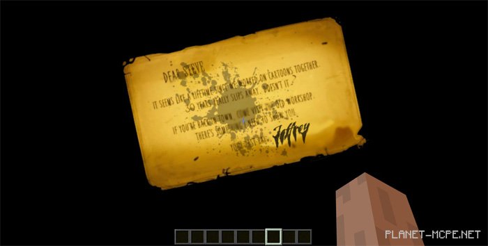 In this MCPE map, you take on the role of Steve, who worked as an animator at Jeffrey’s studio 30 years ago. Today, he has invited you back to the studio, but upon your return, you’ll find it abandoned, with ink smeared everywhere. Your mission is to activate the machine in Minecraft PE and safely reach the exit without meeting your demise.
