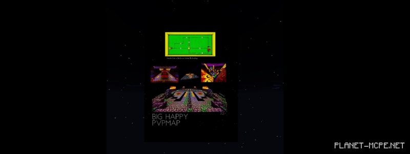 We are excited to present an amazing map for PvP titled “BigHappy 3.2.4 PVP (Great Joy PVP)“. This map features sky battles and a 1 vs 1 arena in Minecraft PE.