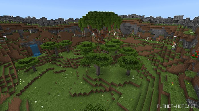 The map features stunning landscapes along with a massive custom tree. There’s also a secret hidden within this map, so stop reading and start the party in Minecraft Pocket Edition!
