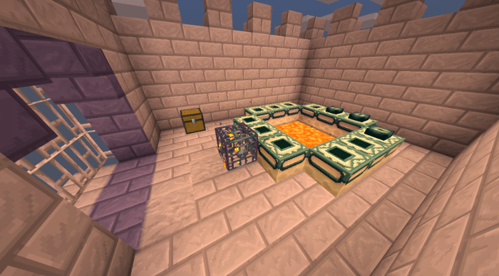 Tip: You can obtain an Eye of Ender from a cleric villager. There are also 3 Eyes located in the portal room. Blaze rods can be acquired from a Blaze spawner in the Nether.