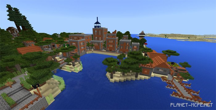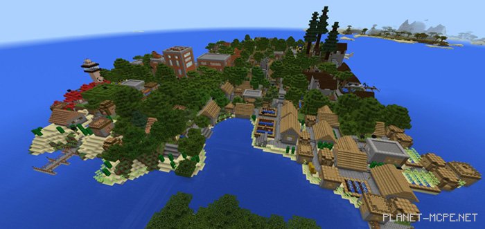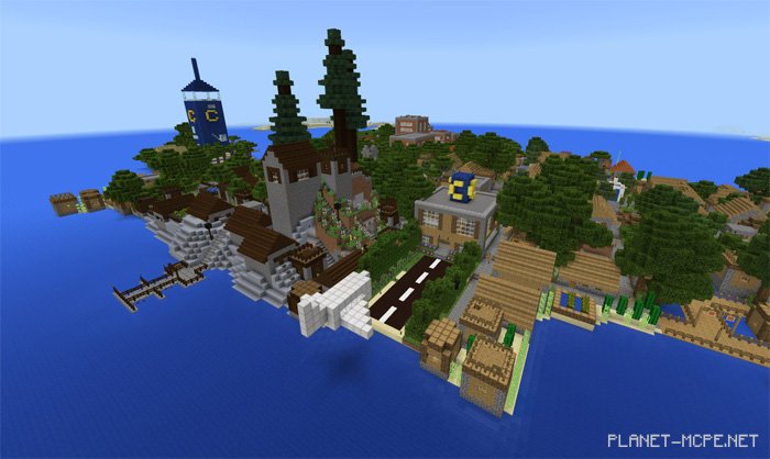 The map «Caden Island» is a distinctive yet conventional world in Minecraft Pocket Edition, featuring the classic village style of MCPE within a large urban setting. The city is divided into five unique sections, each showcasing different architectural styles. Although it occupies a relatively small island, there are plenty of intriguing sights to explore.