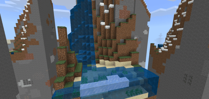 The map is divided into numerous sizable zones, allowing you to discover villages inhabited by villagers from Minecraft or various structures rising above the ground.