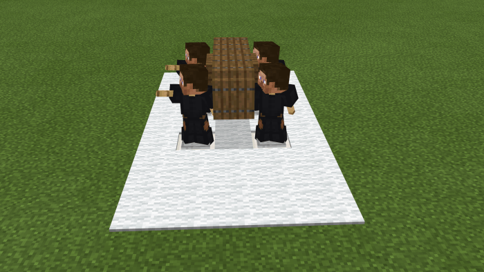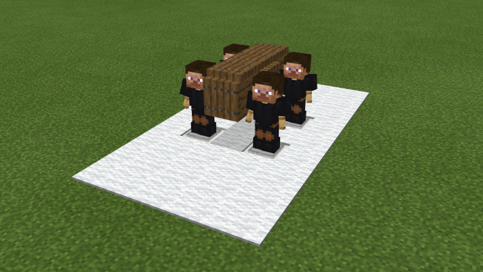 With the surge of memes featuring six men dancing with a coffin across the Internet, why not incorporate it into Minecraft? The map titled Coffin Dance World offers a compact realm within Minecraft, showcasing a single attraction—four men carrying a coffin.