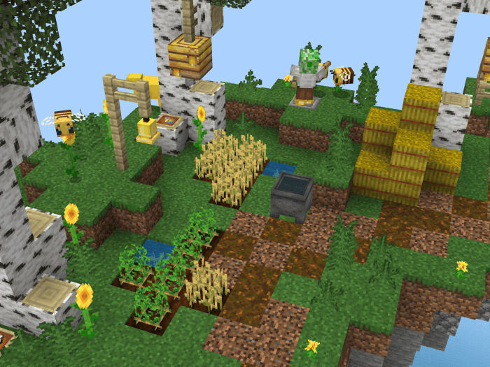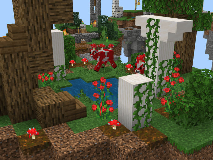 The mapColorful Sky Islands” features six vibrant islands floating in the sky. This stunning location is perfect for playing with friends and surviving in Minecraft.