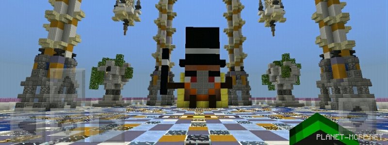 The map «Command Blocks Boss» utilizes command blocks to spawn mobs in Minecraft PE, which you will need to battle on the arena provided. This arena is governed by a command block situated on a golden throne, and the main question is whether you can defeat it.