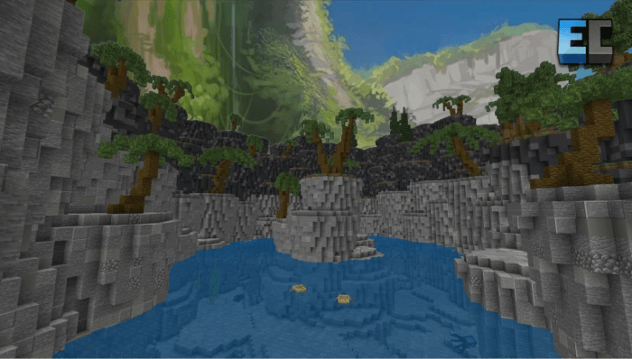 On the map titled “Custom Terrain Bundle,” you will find four new areas that are perfect for themed projects in Minecraft.