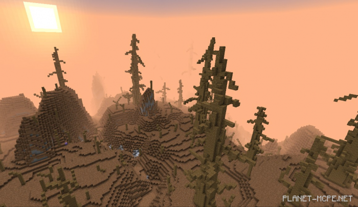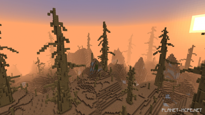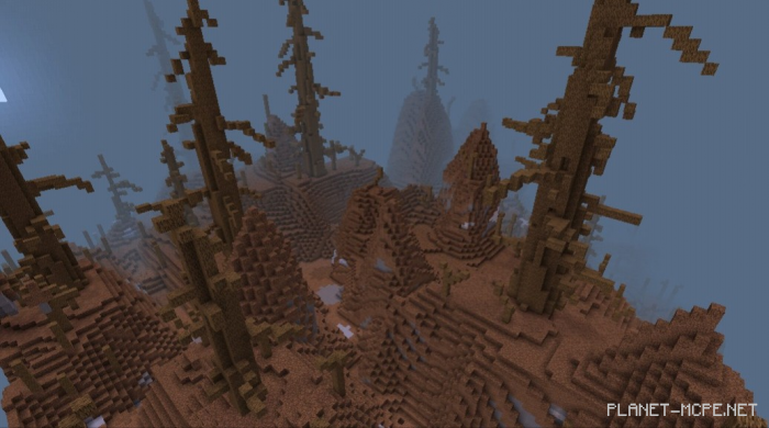 This map has been generated in an “old” world format, replacing surface blocks with dirt and removing water to create a more barren appearance, while adding custom trees in Minecraft Bedrock, resulting in a truly inhospitable environment. I hope you enjoy it.