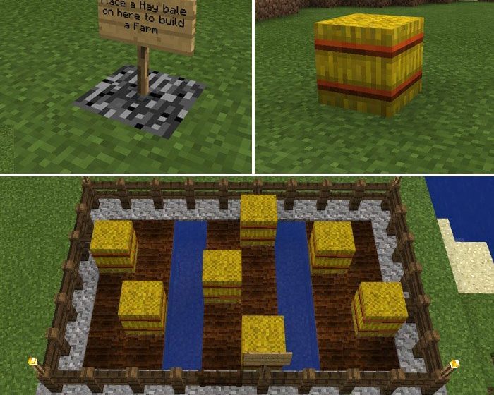 Throughout the island, you will encounter numerous signs with instructions that you need to follow. For instance, as shown in the screenshot below, I need to place a hay bale on a block and then build my own farm around it.
