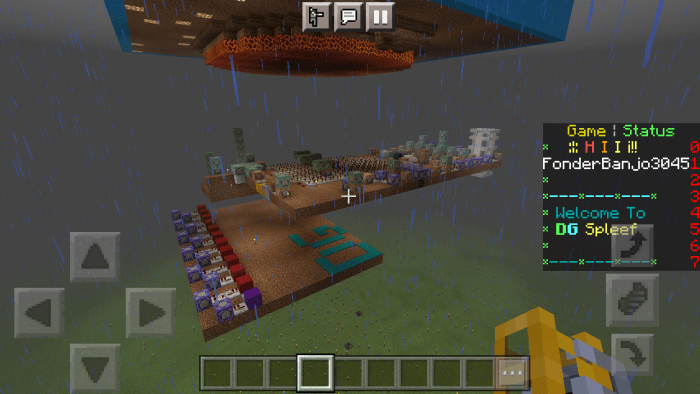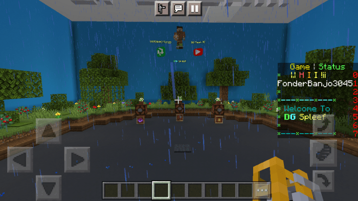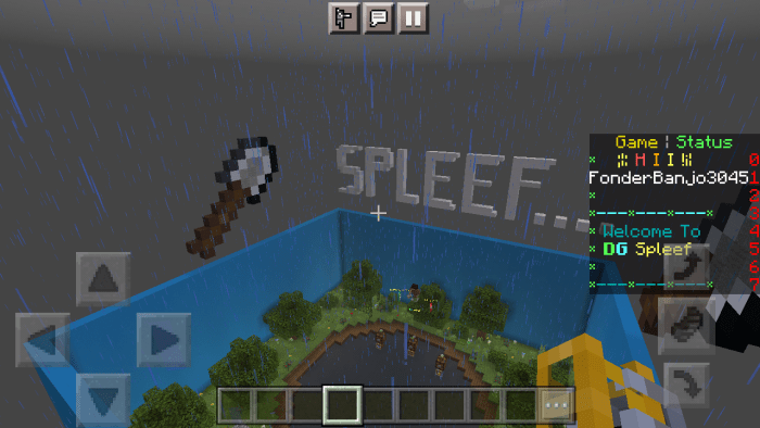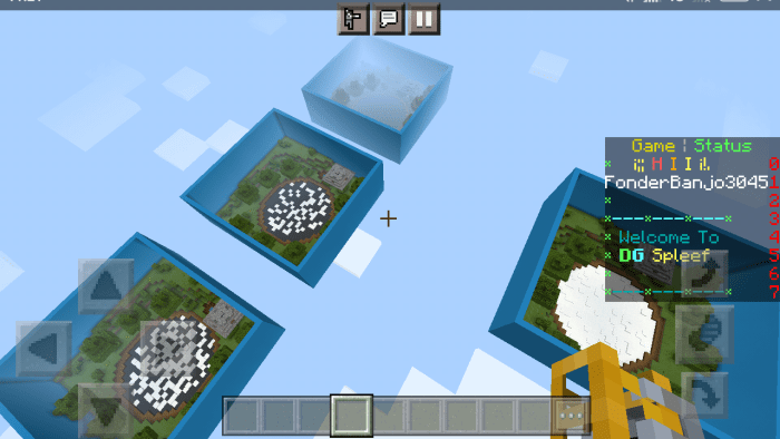Welcome to the mapDG Spleef” in Minecraft Bedrock! Your objective is to be the last player standing on the field by eliminating all other participants. The map features a scoreboard, an enhanced lobby, world icons, and a colorful floor.