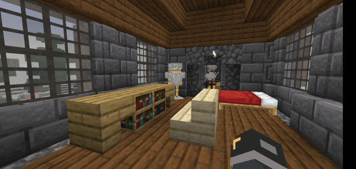 The Dragon Hunter House is an impressive mansion in Minecraft for Android, perched high in the mountains. Here, your character can discover a permanent refuge amidst the harsh terrain of the map.