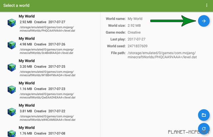 The first thing you’ll need is an Android device (smartphone/tablet) along with the Blocktograph app. Launch Blocktograph, select your world, and then tap the blue arrow in the upper right corner to view/edit the world.