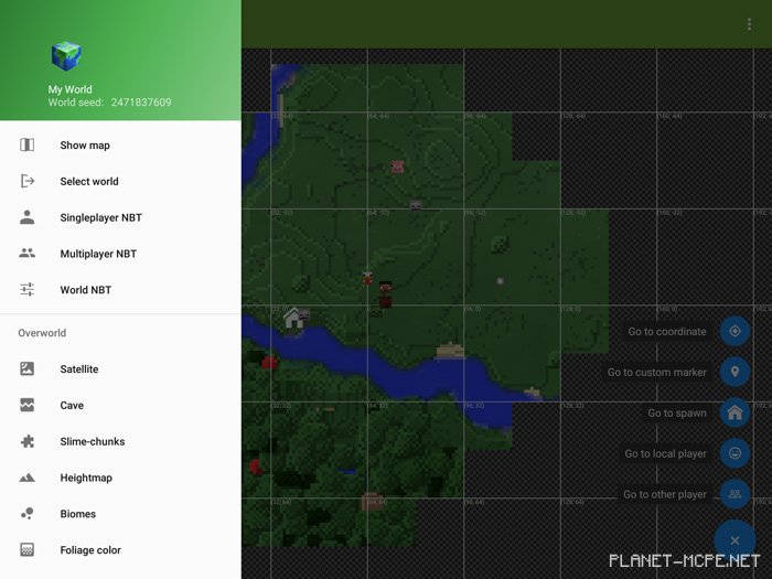 Next, you will see a map overlay on your world MCPE. Tap the “+” icon in the bottom right corner, then select Singleplayer NBT from the left menu.