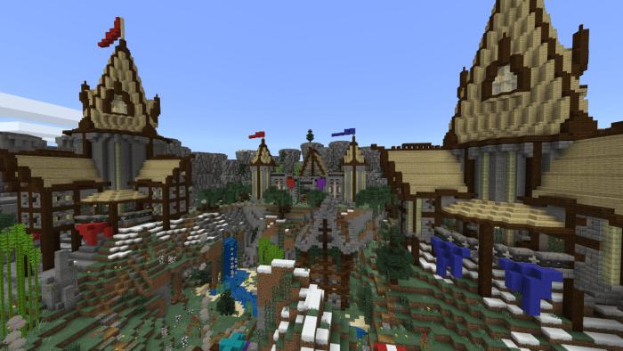 Map “Endercraft Realm – Minigames Update” features a wide array of mini-games for Minecraft, set in stunning themed locations. The latest update introduces three new mini-games: Skywars, Firework Brawl, and Wither Fight. In addition to these, there are other games available along with various features, including a new texture pack.