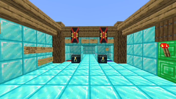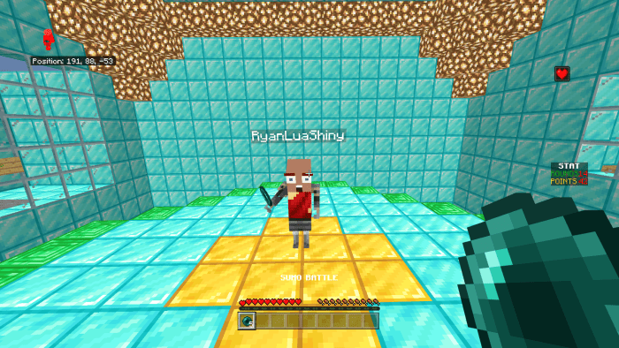 You can protect your character by using Ender Pearls. Currently, battles are limited to two Minecraft users. Other players can enter the spectator area (see image below) to watch the fight. In the shop, you can exchange points for items. Currently, only snowballs are available.