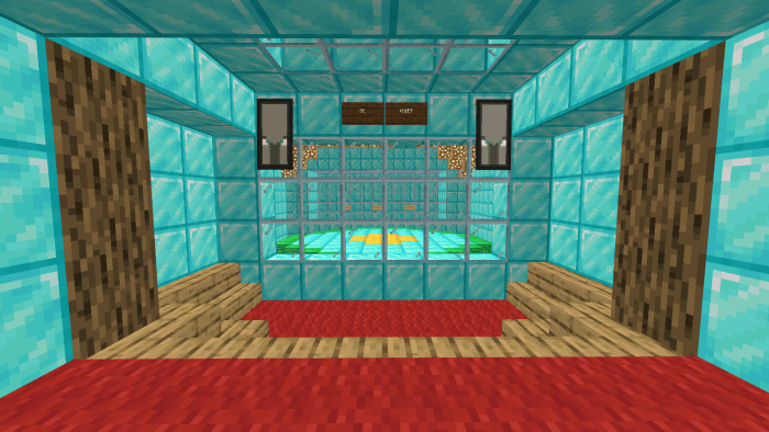 Challenge your friends to a sumo wrestling match on the map titled “Epic Sumo Battle” in Minecraft Bedrock! The objective of the game is to push your opponent off the platform. To prepare for battle, you can activate the computer combat mode and enhance your skills. A shop is also available where you can purchase items that will increase your chances of victory.