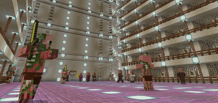 You find yourself unfortunate enough to be trapped in one of the largest prisons globally within Minecraft Pocket Edition on the map titled “Escape”. However, you are not alone. Numerous villagers are also imprisoned here. A voice has recently begun communicating with you. Therefore, you must either end it all or finally manage to escape from this prison. But be cautious, as pig zombies patrol the entire facility in Minecraft PE, both day and night.
