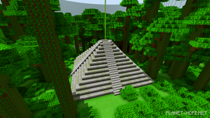The compact yet varied map titled “ET’s Survival Games 1: The Jungle” for the world of Minecraft features numerous locations, including a village, ravine, mine, jungle temple, and pyramid.