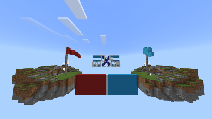 Defend your territory and launch attacks on enemies in the map titled “EXE The Bridge” for Minecraft Bedrock! Your mission is to infiltrate the opponents’ base and steal their points while protecting your own. The first team to score four points emerges victorious. To capture points, you need to jump into a specific pit.