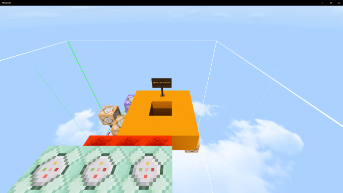 In Minecraft Bedrock, issues may occasionally arise with repeating command blocks. Typically, the system resolves these automatically, but sometimes you might need to reset a command block. To do this, enter creative mode and fly to the top of the command block. There, you’ll find a button that will allow you to reset it.