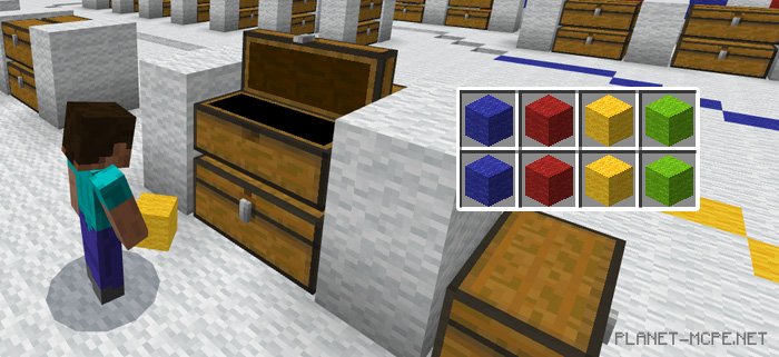 Gather your friends or acquaintances from the world of Minecraft PE and challenge them to an exciting “Wool Race.” The Extreme Wool Race Game is a competitive map designed for 2-4 players. Players in MCPE must search through numerous chests to find their colored wool, then fill in the empty blocks on their path with it. The first player to complete their path wins. Although this mini-game for Minecraft PE is quite simple, it offers a lot of fun and enjoyment.