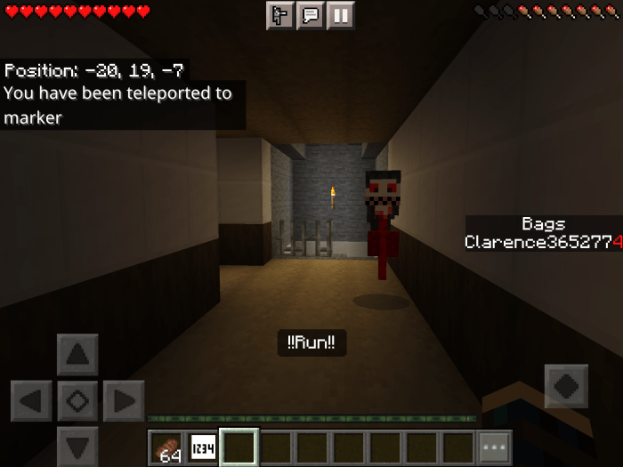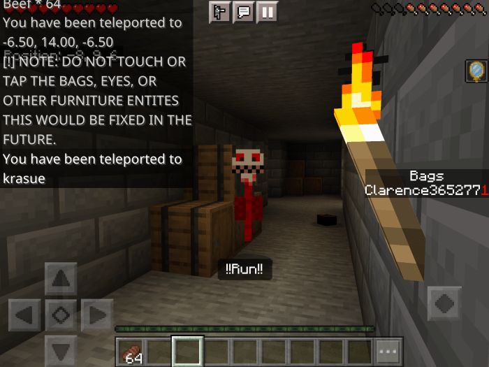 As it turns out, this mansion is inhabited by a monster named Krasue, who has no body and only a head that emits terrifying sounds. He does not appreciate visitors, especially those who steal his belongings. Will you be able to escape from the flying head? Or will this house become your final resting place? In the basement. Tips for gameplay: gather as many bags of money as possible, and use raw beef while running to prevent your character from getting hungry. If you hear footsteps and moans, run as fast as you can because Krasue is nearby. Once Krasue gets close to you, a notification will appear on the screen in Minecraft, indicating that you need to run immediately.
