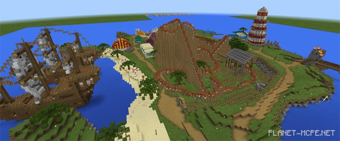 Fantasy Islands is a map that features a medium-sized theme park with several captivating areas for you to explore in Minecraft. Each section has its own unique theme, including Roald Dahl, “The Lord of the Rings,” as well as “Pirates” and “Horror.” Everything blends beautifully within this single themed park. Among other exciting attractions, you’ll find daily fireworks shows, a hotel with themed rooms, and five restaurants in Minecraft Bedrock.