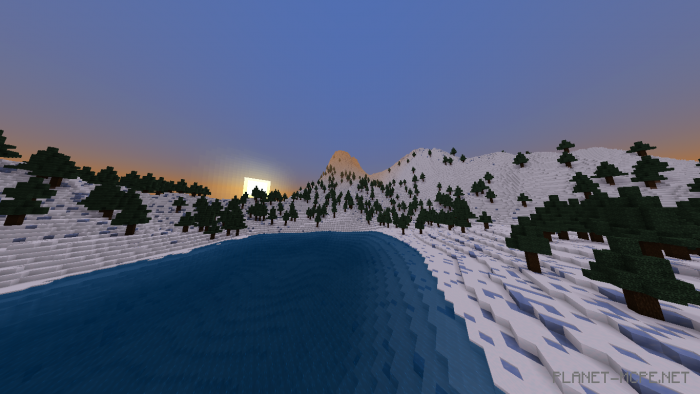 FROZENWORLD (Frozen World) is an expansive map featuring a variety of new exotic trees and stunning characteristics. Created by MarcoGamer, this map for Minecraft Bedrock showcases numerous beautiful locations, including breathtaking mountains and a sea filled with various dangers and items of different shapes and sizes.