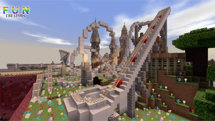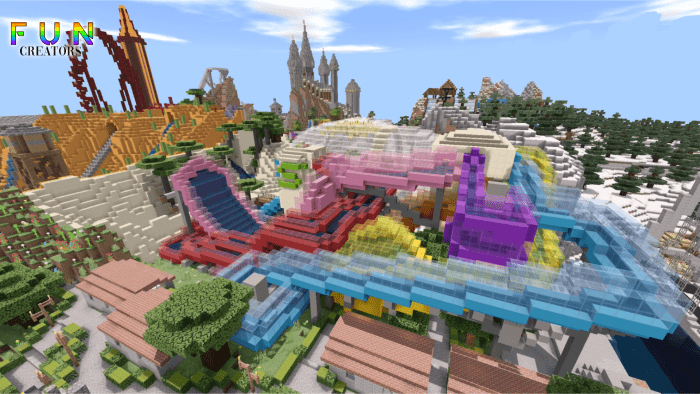 MapFuntopia World (World of Fun)” is the largest realm in Minecraft, featuring a variety of entertainment options, including an amusement park and a vast modern city!