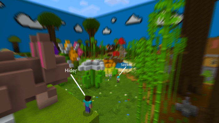 In order to play Minecraft, you need one seeker and several hiders. Once the round begins, players have 20 seconds to scatter across the map and find a hiding spot. After this time elapses, the seeker starts searching for those who are hidden. If the seeker finds someone, they must approach that player and tag them.