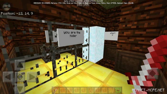 The map “Hide’n Seek The Button” is designed for hide-and-seek gameplay in Minecraft Bedrock. It supports multiplayer mode with up to 32 players. Additionally, there’s a mini-game called “Find the Button,” which accommodates only 2 players. This map features 10 levels that require logical thinking to complete each stage in Minecraft.