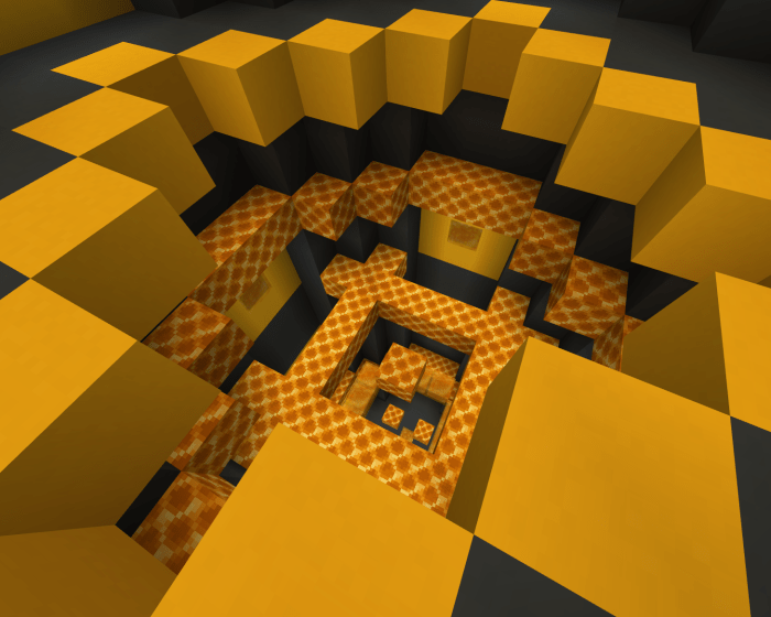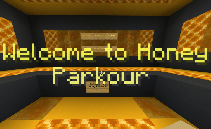 The mapHoney Block Parkour” primarily features the new honey blocks introduced in Minecraft during the latest 1.14 update. It includes six levels that incorporate honey blocks, mazes, droppers, and much more.
