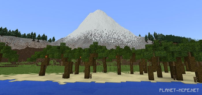 The world on the map “Island Biomes” is a custom realm featuring five completely unique islands, each showcasing different biomes from Minecraft Pocket Edition, including mesa, plains, desert, mushroom, and exotic biomes. This environment boasts towering mountains and unusual trees, which significantly distinguishes this map from standard worlds found in any seed for MCPE.