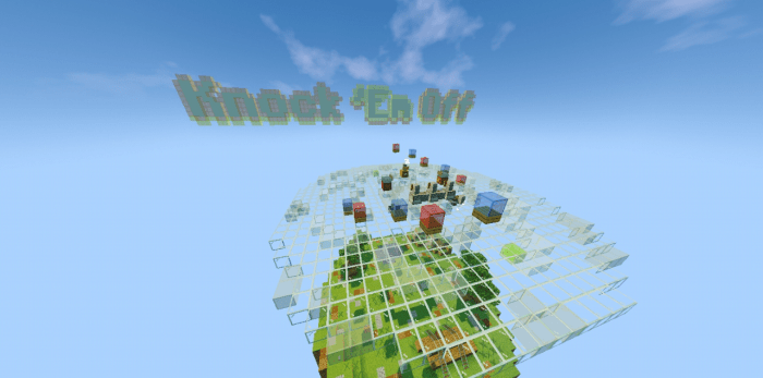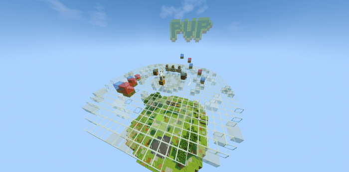 In the map titled “Knock ‘Em Off (PVP)“, your objective is to knock all your opponents off the arena and reach the highest point. There are no time limits for the rounds, and the match will continue as long as there are more than two players remaining on the arena in Minecraft.