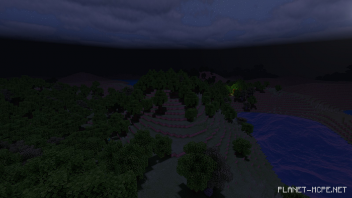 This area is truly vast, which is why this map was created. Beyond the ocean of death lies a normal world (which is essentially just air), but you will need to construct a bridge spanning 100-300 blocks. Trees have unique models, and forests are dense and widespread. A few mountains can be found far off the western coast.