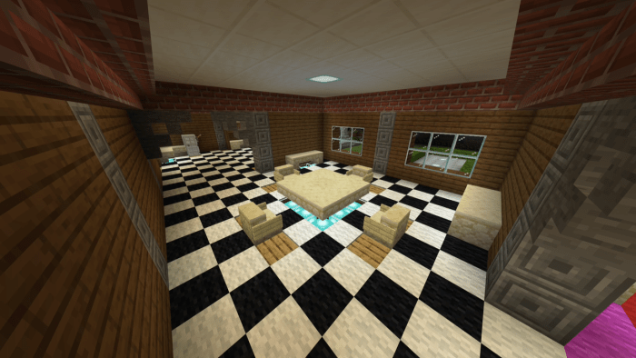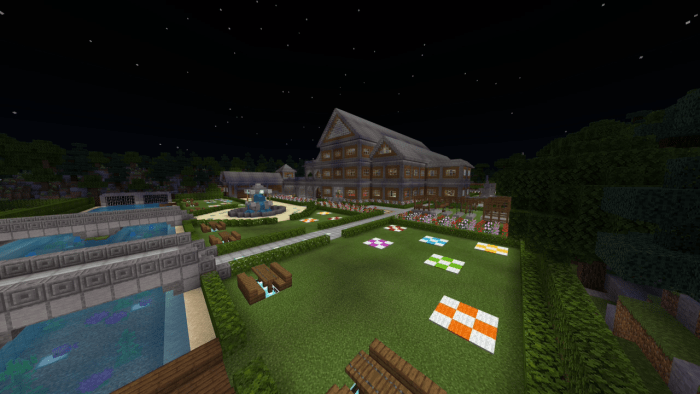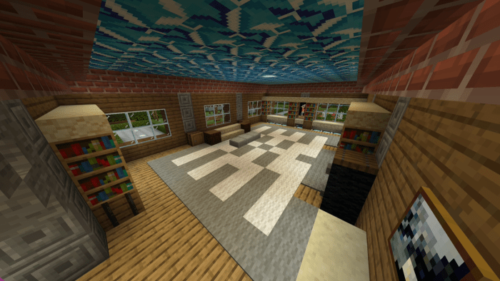 If you are on the lookout for a spacious house in Minecraft featuring a variety of structures, then welcome to the map titled “Libbywolf1617’s Mansion”! This location boasts a large, fully furnished mansion with four floors and a basement that includes a bar, game room, art studio, restroom, laundry area, and dedicated spaces for parties and gatherings.