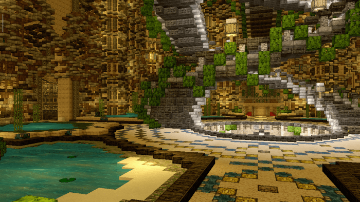 The first main dungeon. It features a grand staircase leading to the top of the structure, showcasing stunning interior design.