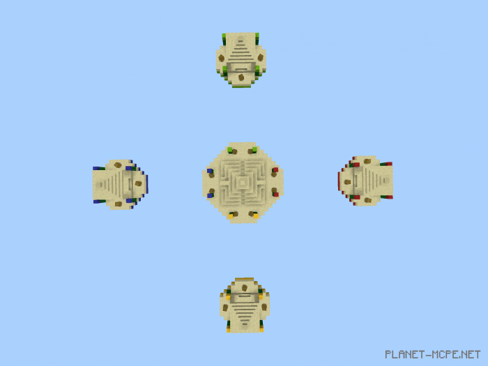 Lucky Islands (Islands of Fortune) is a map featuring a PvP mini-game designed for 2-4 players in Minecraft. Each player spawns on their own sky island, equipped with a luck block to battle against others. The last surviving player in this game within Minecraft Bedrock will emerge as the winner!