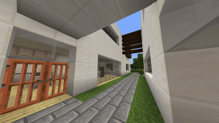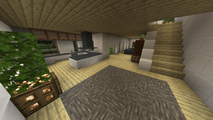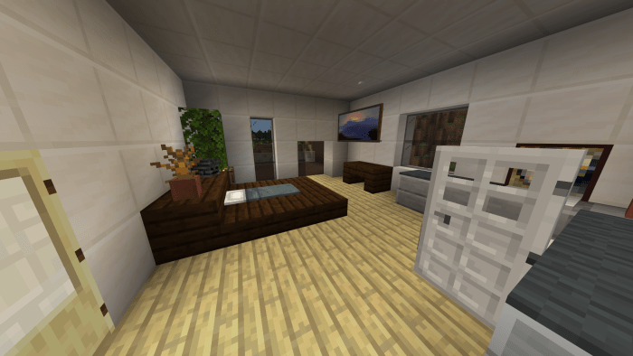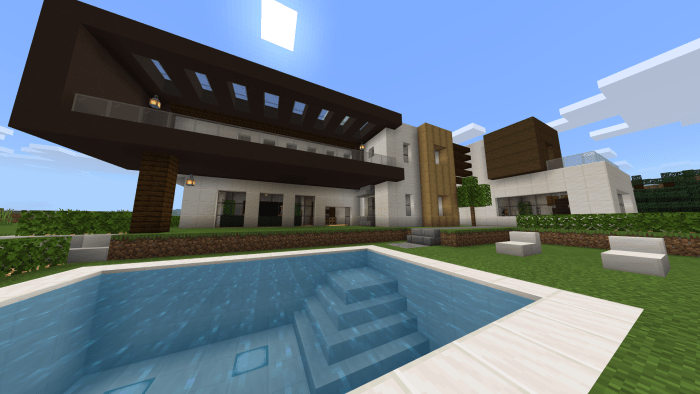 If you’ve ever envisioned owning a spacious, modern home in Minecraft, the map titled “Mansion House” is exactly what you need! This estate features a swimming pool, living room, bedrooms, dining area, kitchen, bathroom, and terrace. Each room boasts a simple yet stylish design.