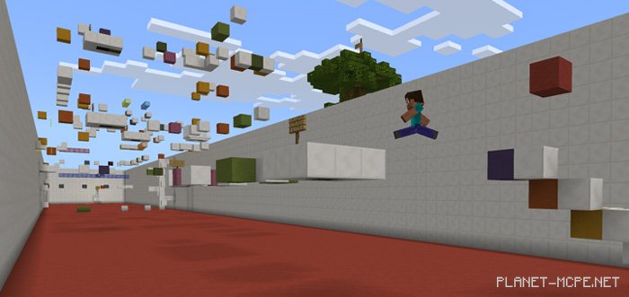 The parkour map “1000 Jump 3” features three distinct levels. By jumping on various terracotta blocks, you will gain a range of special abilities in Minecraft PE, such as enhanced jump height or increased speed. However, overcoming obstacles without utilizing these abilities is impossible, so you’ll need to carefully plan your movements and jumps in MCPE to successfully complete each level.