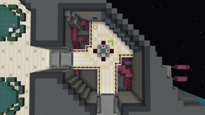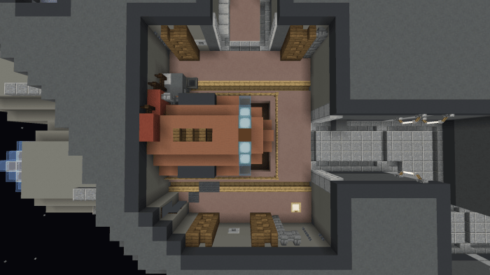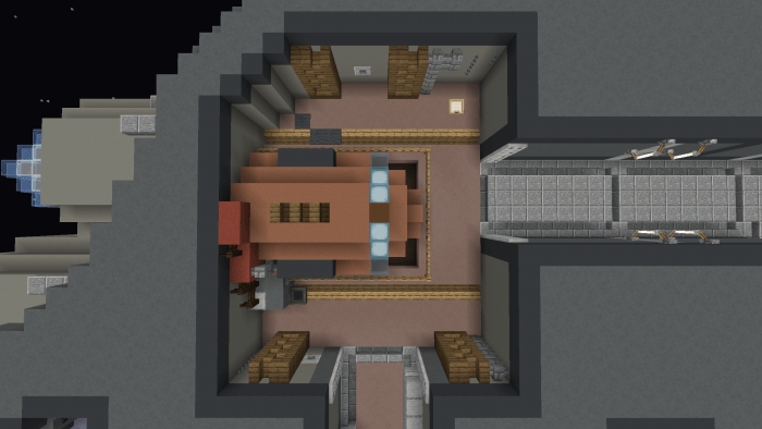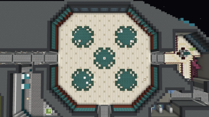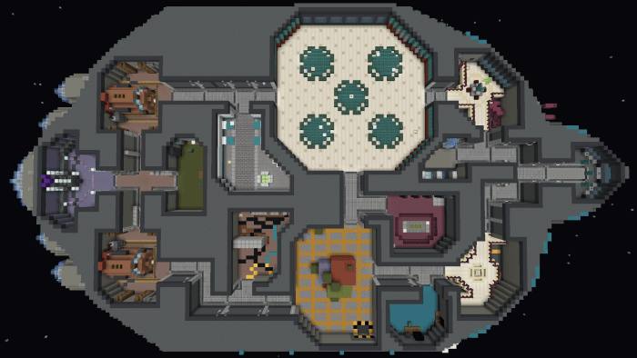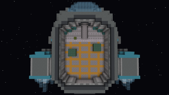 The main setting—a spaceship—has been constructed in Minecraft. This is purely a creative map, so you won’t be able to play Among Us here.