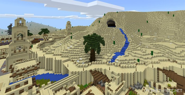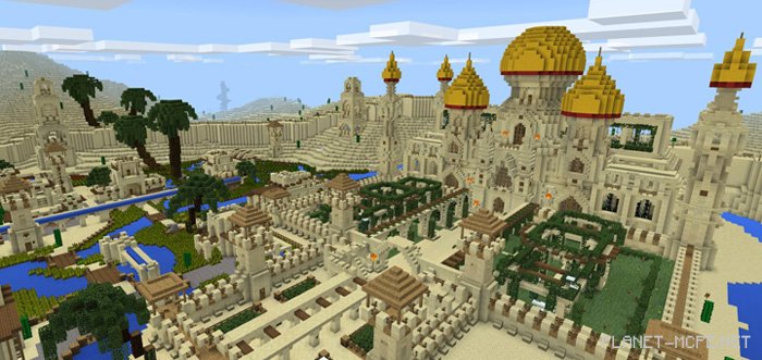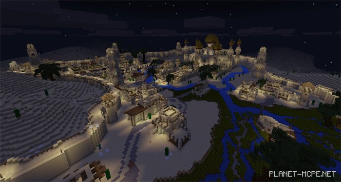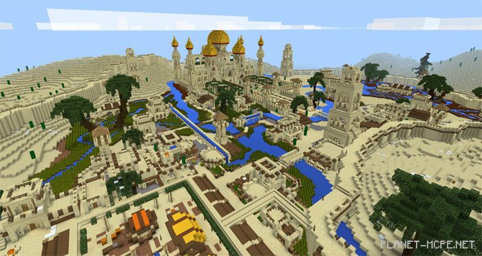 On the map “Arabian Desert City” for Minecraft Pocket Edition, you will discover an Arabic city set in a desert environment of MCPE. The city is quite expansive and surrounded by numerous beautiful landscapes. The most striking structure on this map for Minecraft PE is the temple located at the heart of the city. This map was originally created on PC by the YouTuber known as Jeracraft. I highly recommend visiting this map to all players of Minecraft Pocket Edition!