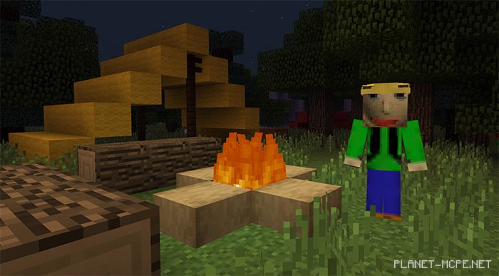 The map «Baldi’s Field Trip Minecraft Edition» is a mini-game inspired by the well-known game Baldi’s Basics. This time, you will embark on an adventure in the forest within Minecraft. In the woods, you’ll set up camp, and your main task will be to keep the fire going. You can achieve this by feeding the flames with sticks that you gather from the trees.