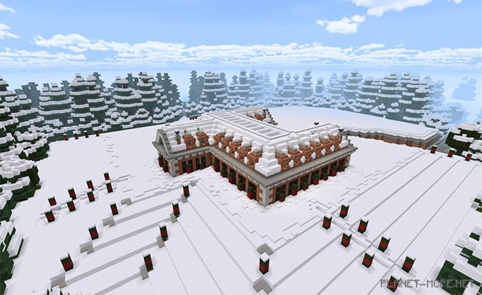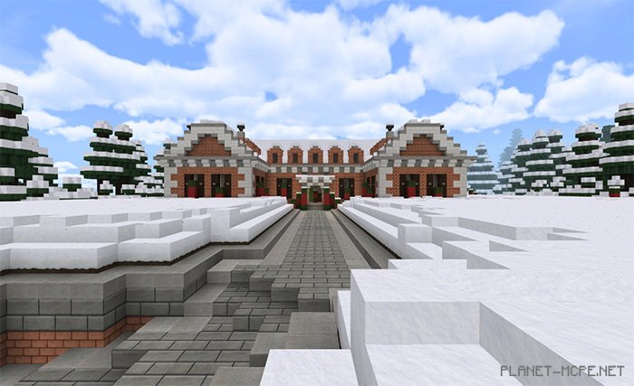 The mansion located on the map titled “Christmas at Fox Manor” is more than it appears. Come and discover this opulent estate in Minecraft Bedrock, a masterpiece nestled within a forest, featuring lawns, guest houses, swimming pools, forty garages, a gate, a gym, a cinema, a large greenhouse, and many other fascinating elements in Minecraft